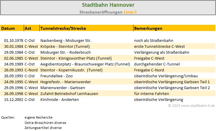 Quelle: "Stadtbahn Hannover-Linie C-Ost" LHH U-Bahn Bauamt aus 1989