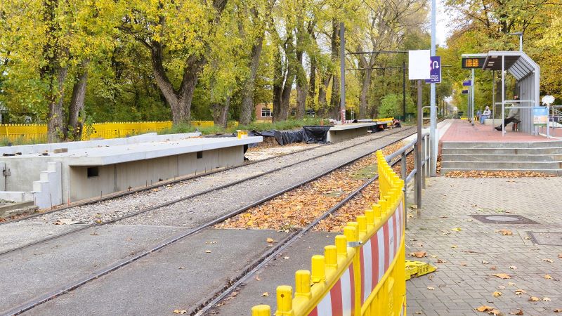 stadteinwärts führenden Bahnsteiges und dem anschließenden Neubau. Fertigstellung ist Ende 2025 geplant.