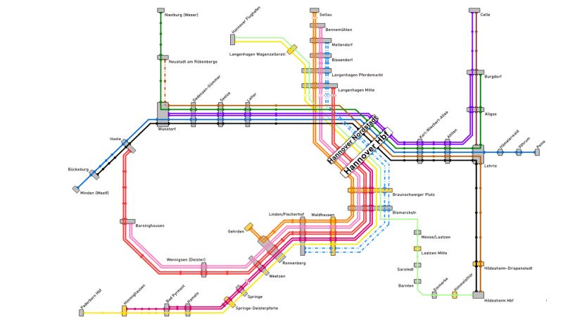 Seit der EXPO 2000 hat Hannover ein S-Bahn-Netz, welches die Landeshauptstadt mit dem weiteren Umland verbindet und