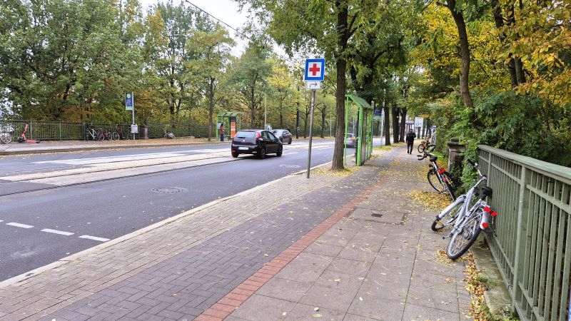 Blick von der S-Bahn-Brücke Richtung Norden auf die bestehende Haltestelle | © 10/2024