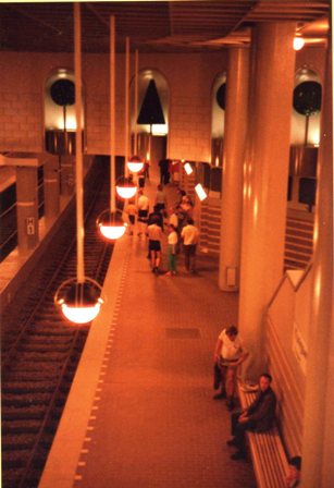 zusätzlich erhellt. Die Wände wurden mit gewelltem Edelstahlplatten versehen. Auch diese Station ist ohne Mittelstützen errichtet