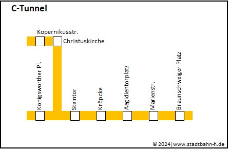 Als letztes Teilstück des C-Tunnels wurde die Strecke C-Nord gebaut. Vom Steintor kommend zweigt ab Höhe des Neustädter Friedhofes eine