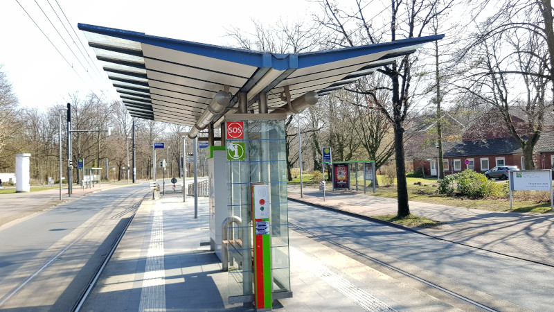Die Verlängerung nach Anderten wurde auf einem separatem Bahnkörper südlich der Lehrter Straße angelegt. In Höhe der Kreuzung mit dem Königsberger Ring liegt die gleichlautende Station - auch hier wieder ein Mittelbahnsteig.