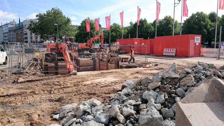 Blick auf den Steintorplatz in Höhe der neuen oberirdischen Station