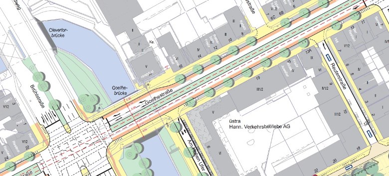 Anbei einige Pläne der Umbaumaßnahmen, wobei aktuell (Sept. 2017) nur der Teil vom Goetheplatz bis zum Raschplatz verwirklicht wurde.