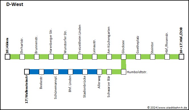 In diesem Kapitel wird der aktuelle Zustand der Strecke D-West nach Ahlem vorgestellt; beginnend am Goetheplatz. Aktuelle