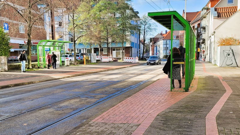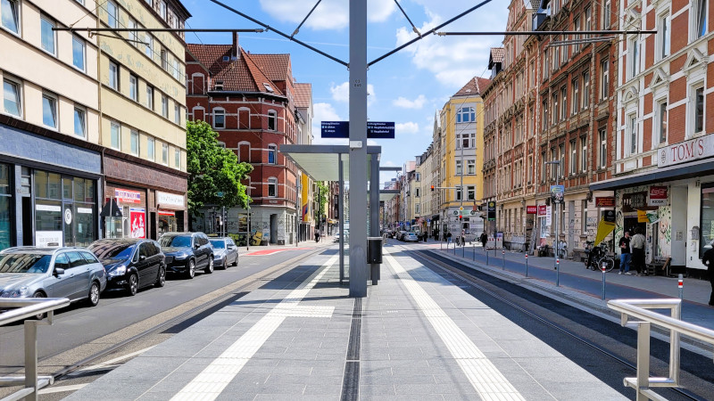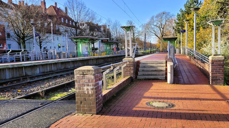 Calenberger Str. liegt die Station Humboldtstraße mit einem am 11.12.2020 freigegebenen Mittelhochbahnsteig. Hier werden die