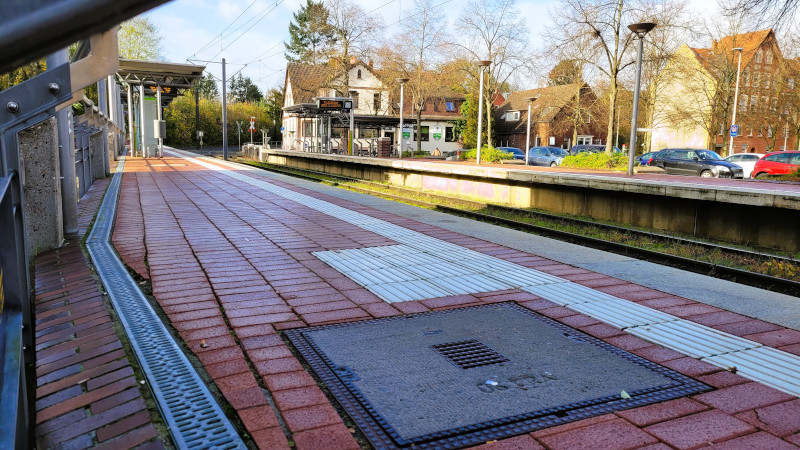 mit einer Länge von 70 m (!), damit auch Langzüge auf dem Weg vom Betriebshof Glocksee in den A-Tunnel und umgekehrt hier halten können.