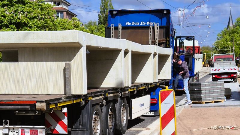 26.04.2026: Jetzt geht's los: Anlieferung der Elemente für den Hochbahnsteig | © 04/2026