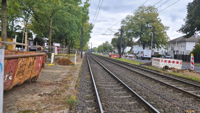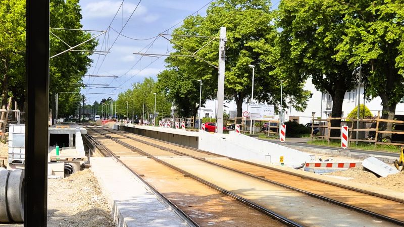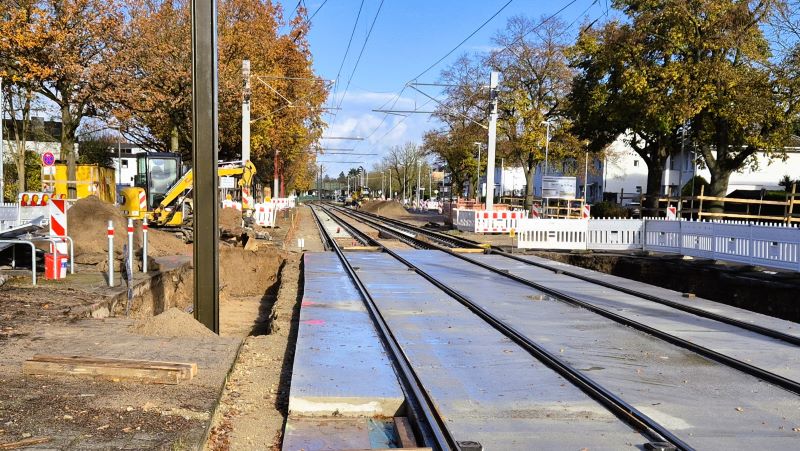 17.11.2024: Blick in Richtung Fasanenkrug: die neuen Gleise im Haltestellenbereich sind verlegt | © 11/2024
