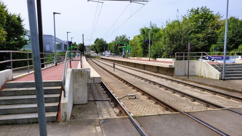 30.08.2025: Blick in Richtung Alte Heide: Der stadtauswärts führende Bahnsteig ist noch in Betrieb | © 08/2025