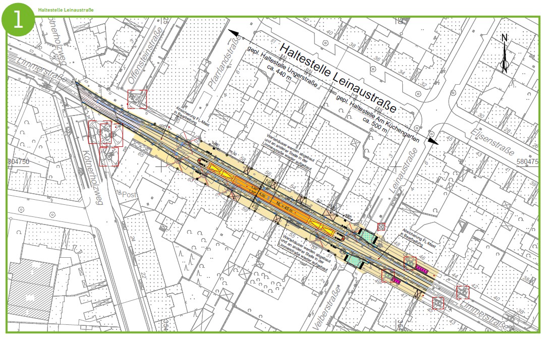 Planung zur Station Am Küchengarten Planung zur Station Leinaustraße © 2022 infra Infrastrukturgesellschaft Region Hannover GmbH/Nachbargleis Limmerstraße aus 03/2022 Fenster schließen