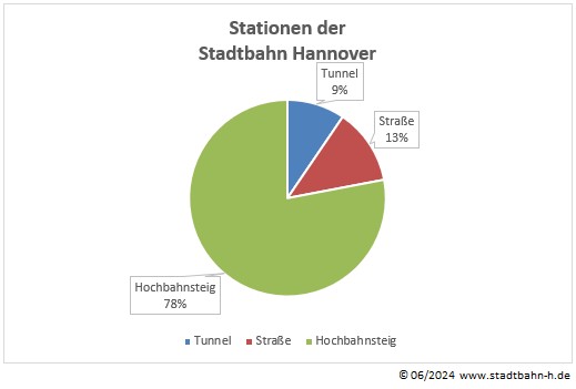 Insgesamt hat das hannoversche Stadtbahnnetz per 1. Juni 2024 folgende Anzahl an Stationen 2)