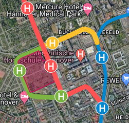 hergestellt werden. Die Entfernung von der Station Neue MHH bis zur Misburger Str. beträgt ca. 900 m.