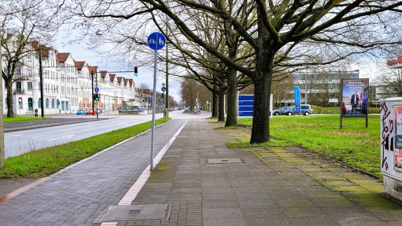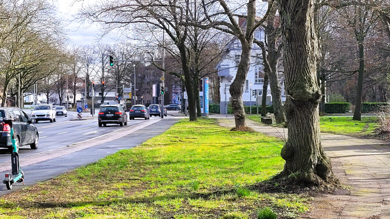 Baumreihen. Entweder muss die Straße für den Autoverkehr gesperrt werden, um eine separate Trasse bauen zu können, oder