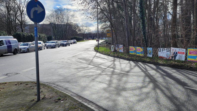 hinter dem Paracelsusweg Richtung Altwarmbüchen oder eine großzügigere Kurve [größerer Kurvenradius] wie