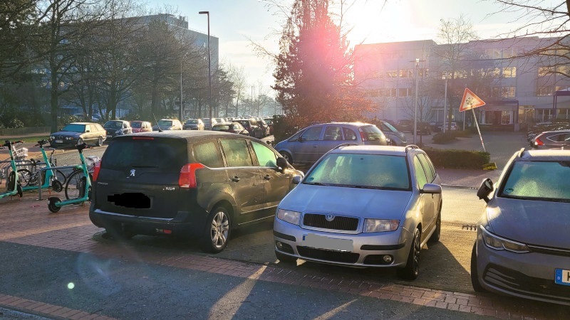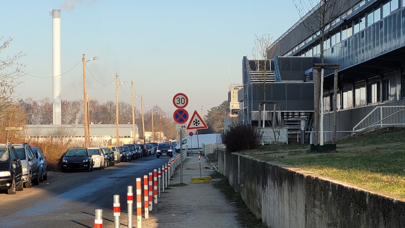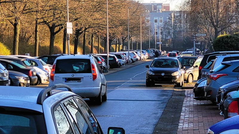 ein. Diese ist zwar nicht so schmal, wie es zuerst aussieht. Aber hier befinden sich auf beiden Seiten Parkplätze und