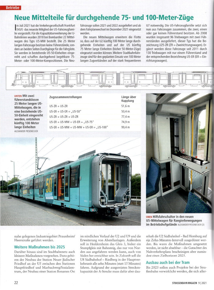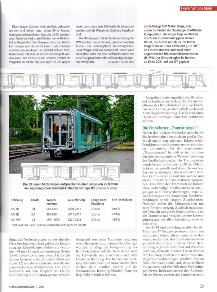 Auszug aus Straßenbahn Magazin 09/2021 "Große Zukunftspläne in Mainhatten" - Neue Mittelteile für durchgehende 75- und 100-Meter-Züge © 2021 STRASSENBAHN MAGAZIN Fenster schließen